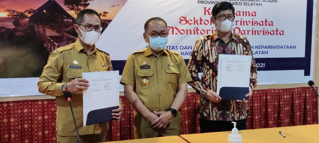 Direktur Politeknik Pariwisata Makassar Drs Muhammad Arifin, M.Pd menandatangani naskah Nota Kesepahaman (MoU) dengan Kepala Dinas Kebudayaan dan Kepariwisataan Provinsi Sulawesi Selatan Prof. Dr. Muhammad Jufri., M.Si. M.Psi, Psikolog yang disaksikan oleh Asisten 2 Bidang Bidang Perekonomian dan Pembangunan Provinsi Sulawesi Selatan Bapak dr. H. M. Ichsan Mustari., M.H.M yang mewakili Plt Gubernur Sulawesi Selatan.